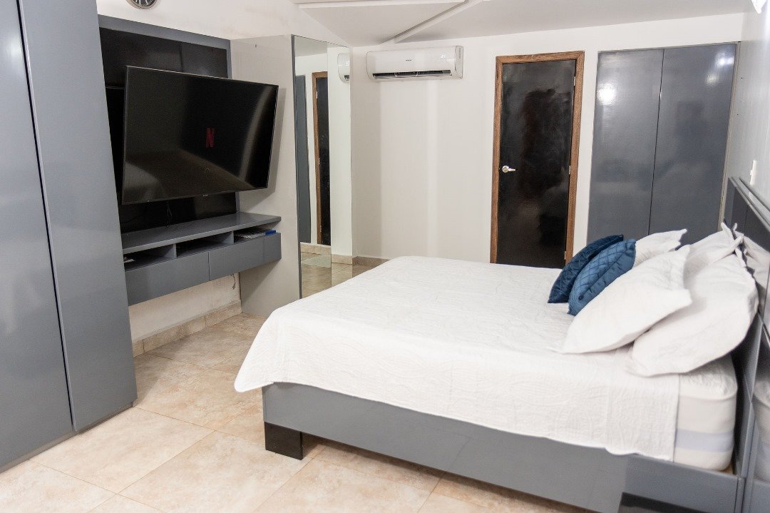 La Queen Deluxe es el equilibrio perfecto entre comodidad y estilo. Diseñada para parejas o amigos que buscan relajarse, esta habitación ofrece una atmósfera acogedora con vistas al jardín tropical, un baño moderno, y acceso exclusivo a una piscina privada.